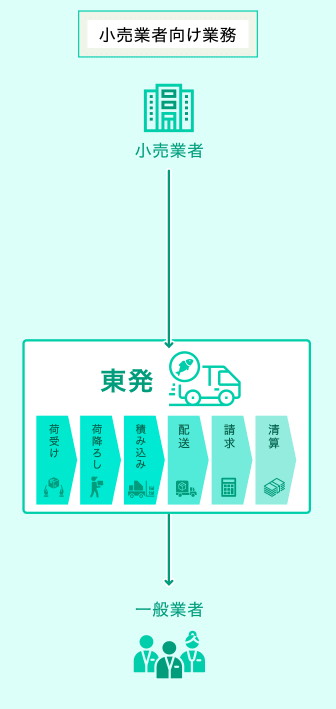 東発のビジネスは大きく分けて【市場向け業務】と【小売業者向け業務】に分かれています。